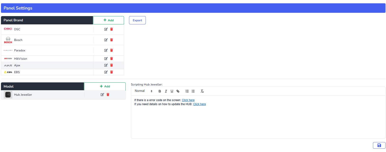 Click on Add to add a panel brand, in the pop-up, type in the panel brand and then either upload or choose a brand photo.